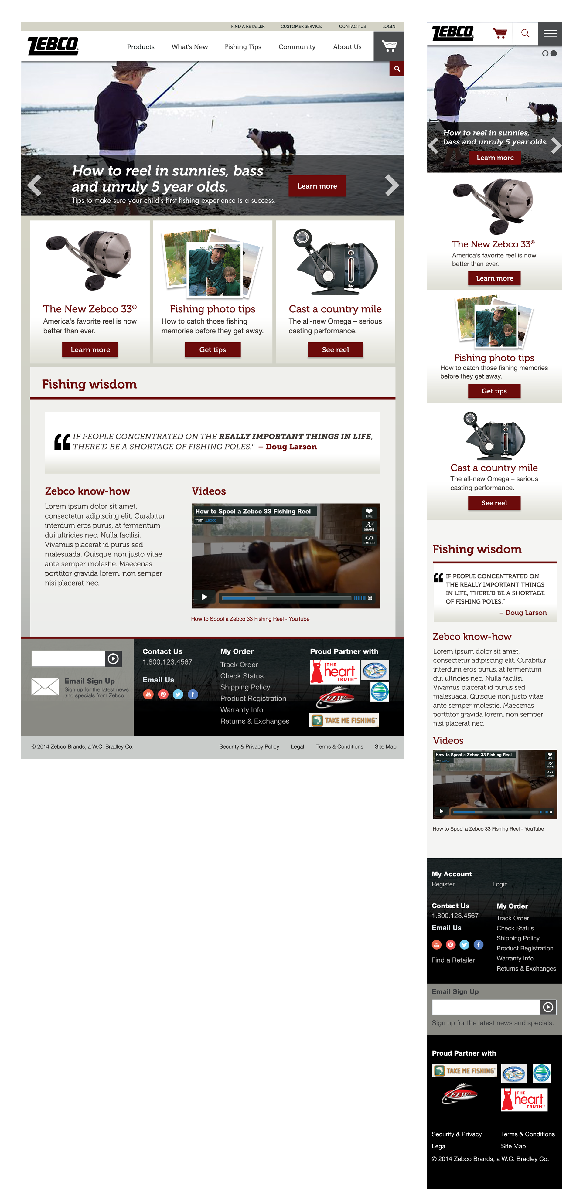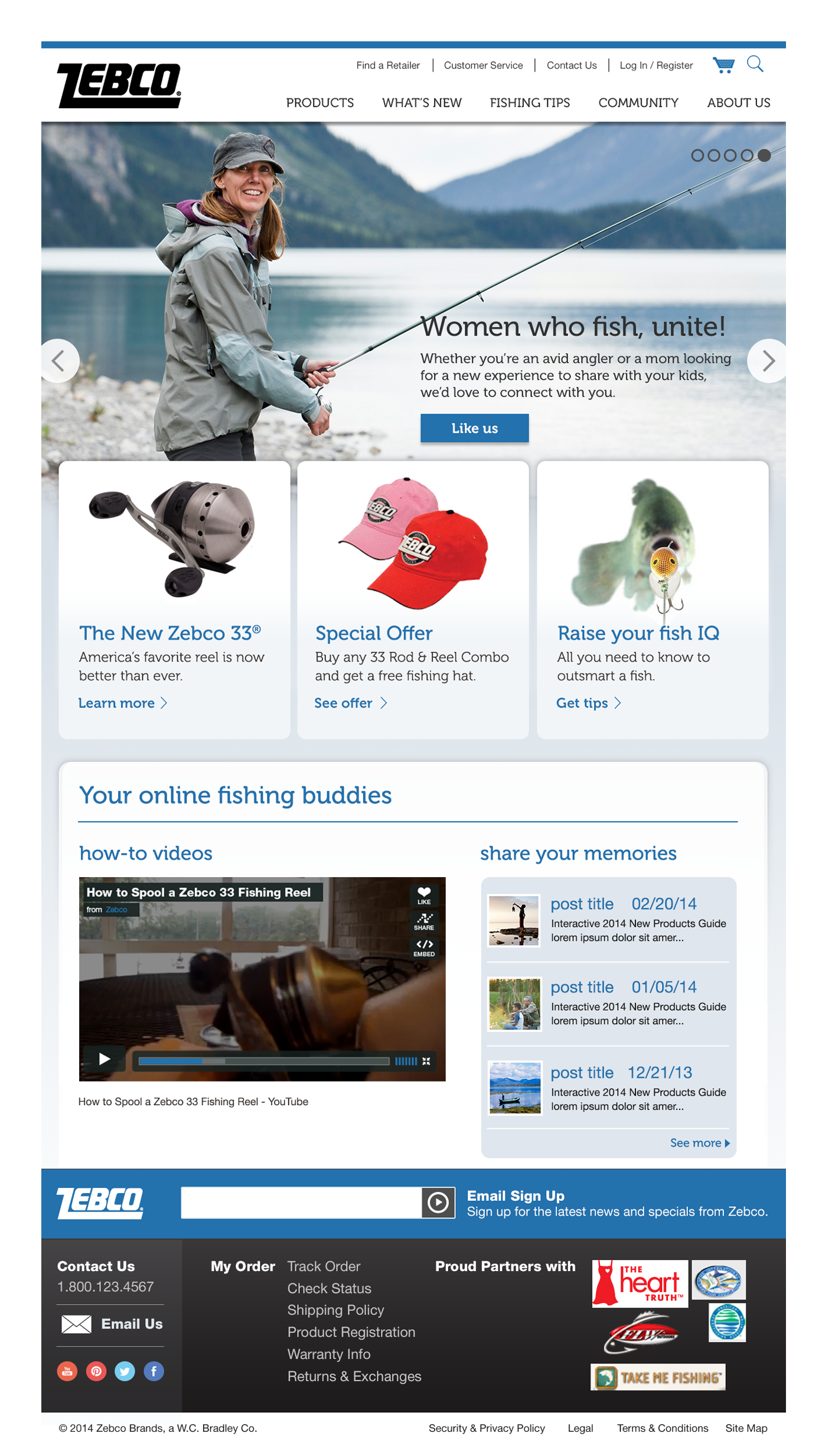 Focused on creating a more inclusive experience for female anglers, I designed original creative concepts for Zebco, an iconic national fishing and outdoors brand. I implemented a clean, modern UI and cohesive visual brand language across desktop and mobile platforms, enhancing accessibility and user engagement.