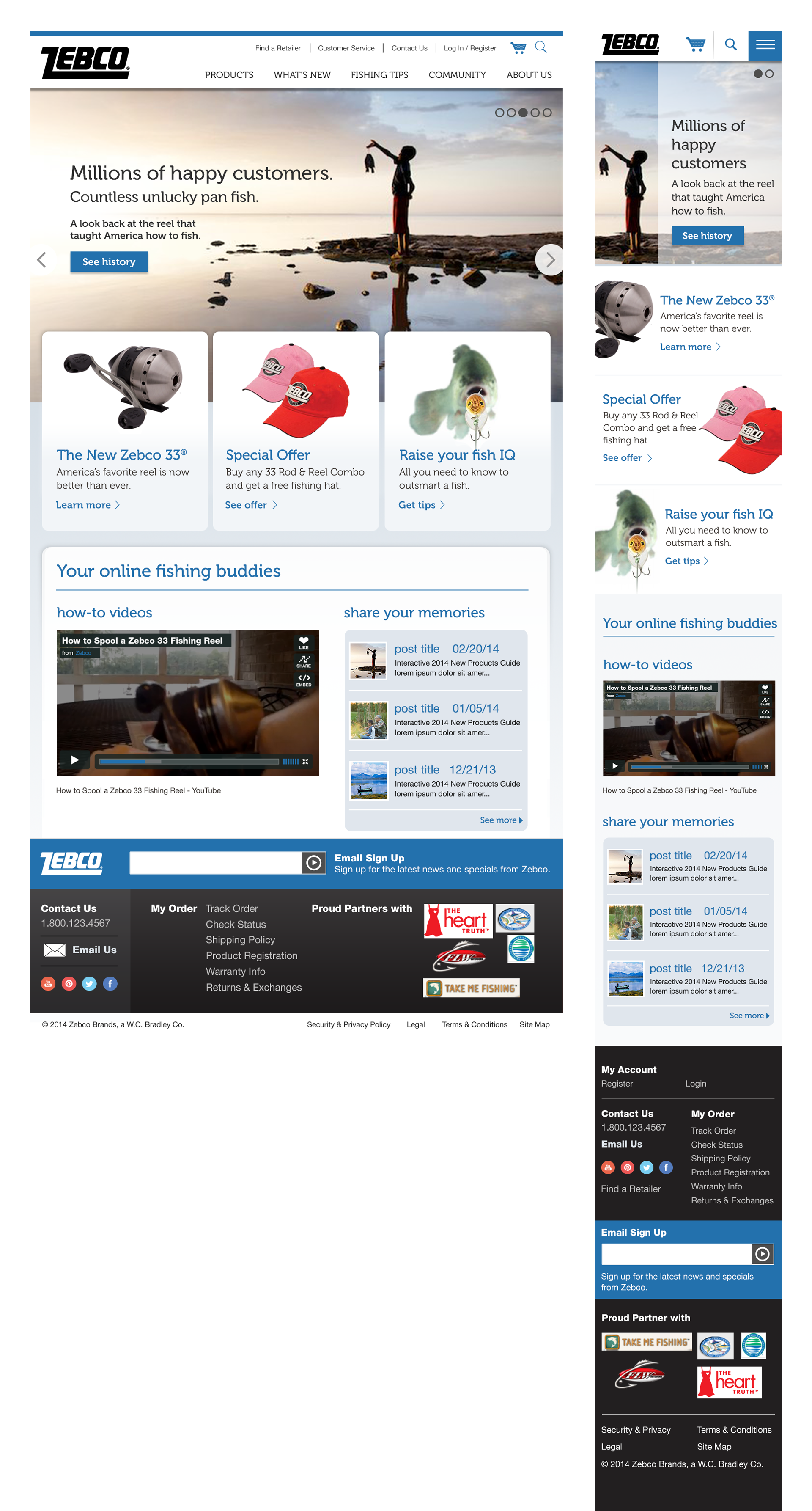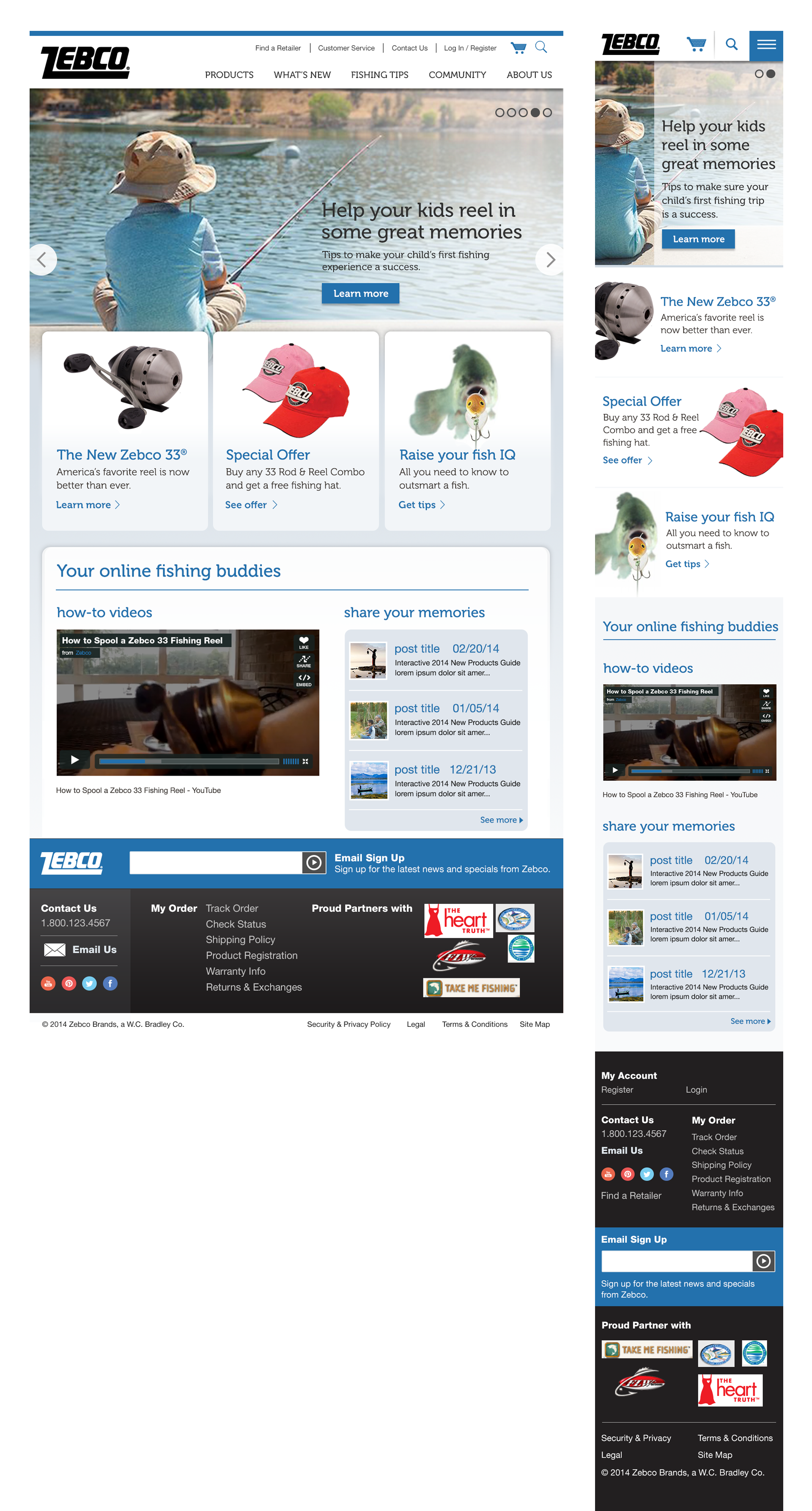 Female anglers, an often-overlooked audience, represent a growing segment of Zebco’s customer base, especially as fishing becomes a cherished family activity enjoyed across generations. To modernize and expand Zebco’s reach, I designed original creative concepts for the brand’s digital presence. Focused on creating a more inclusive and accessible experience for female anglers, I implemented a clean, modern UI and cohesive visual brand language across both desktop and mobile platforms.
