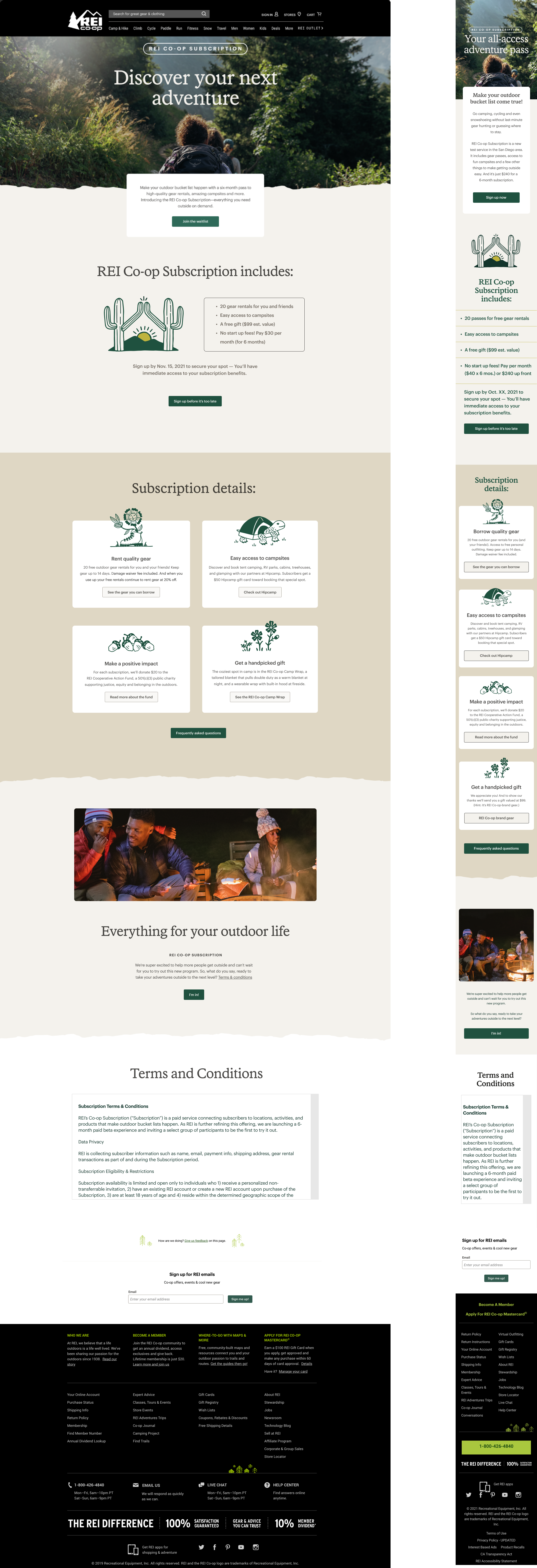 As Principal Product Designer for REI’s Membership Subscription pilot, I defined the design strategy, led user research, and collaborated across engineering, UX, and brand teams to deliver a customer-first product for market testing.